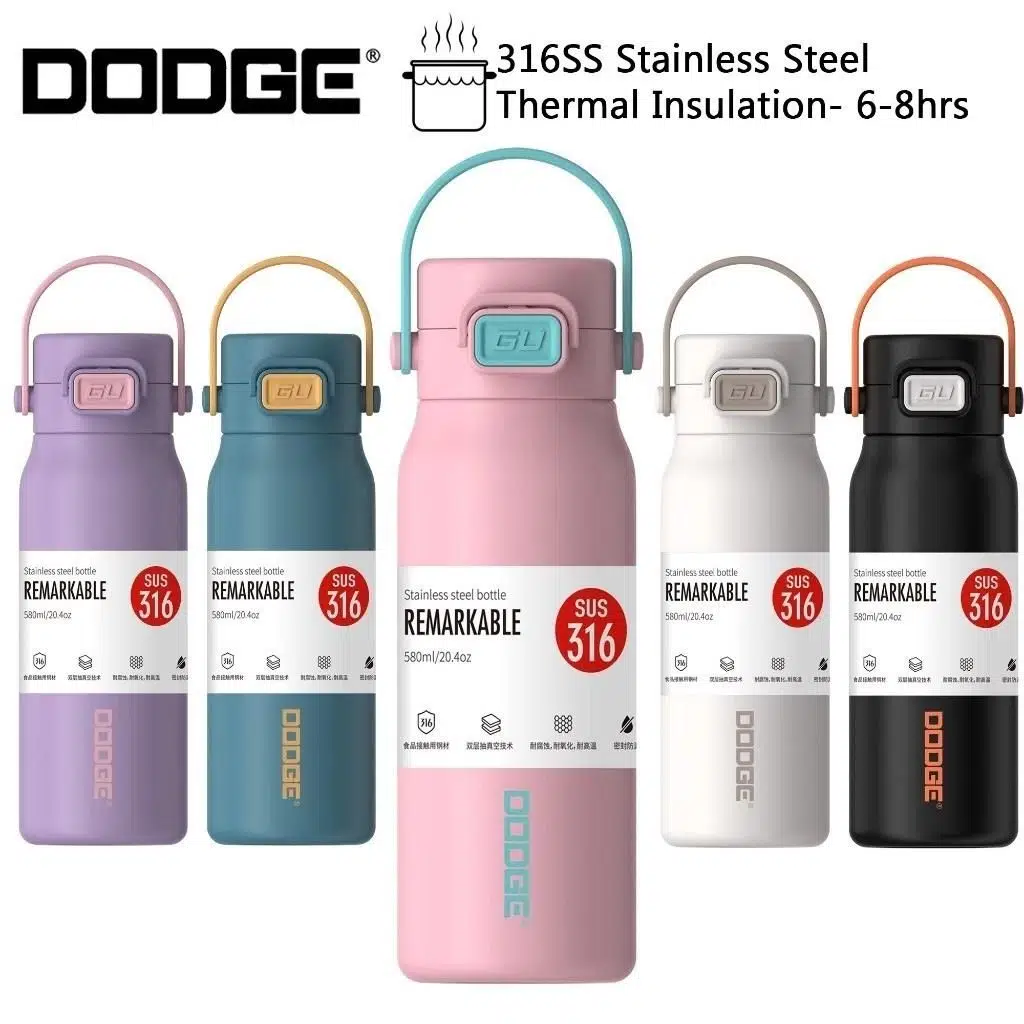 Dodge Çelik Termos Matara, Vakumlu, Yalıtımlı, Paslanmaz Çelik 316, Kilitli Sızdırmaz Kapak 580Ml Beyaz