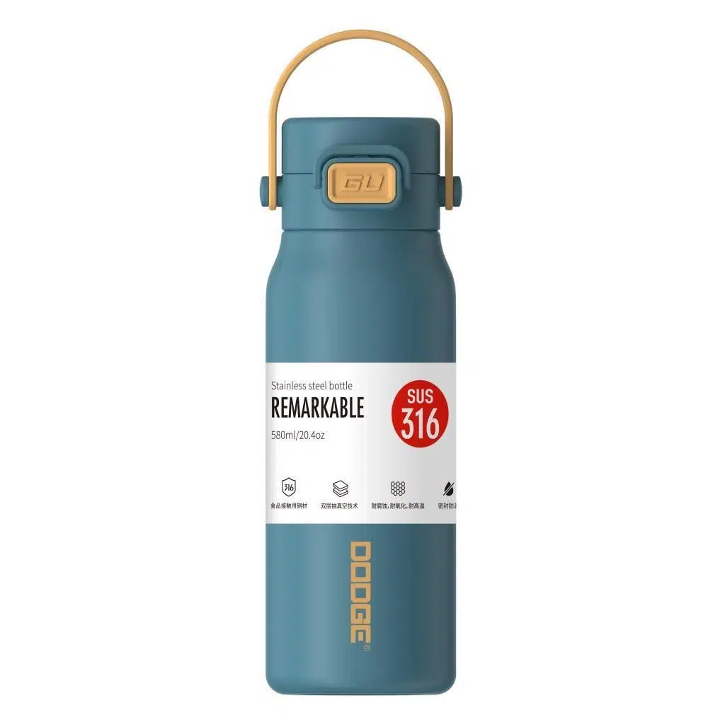 Dodge Çelik Termos Matara, Vakumlu, Yalıtımlı, Paslanmaz Çelik 316, Kilitli Sızdırmaz Kapak 580Ml Mavi