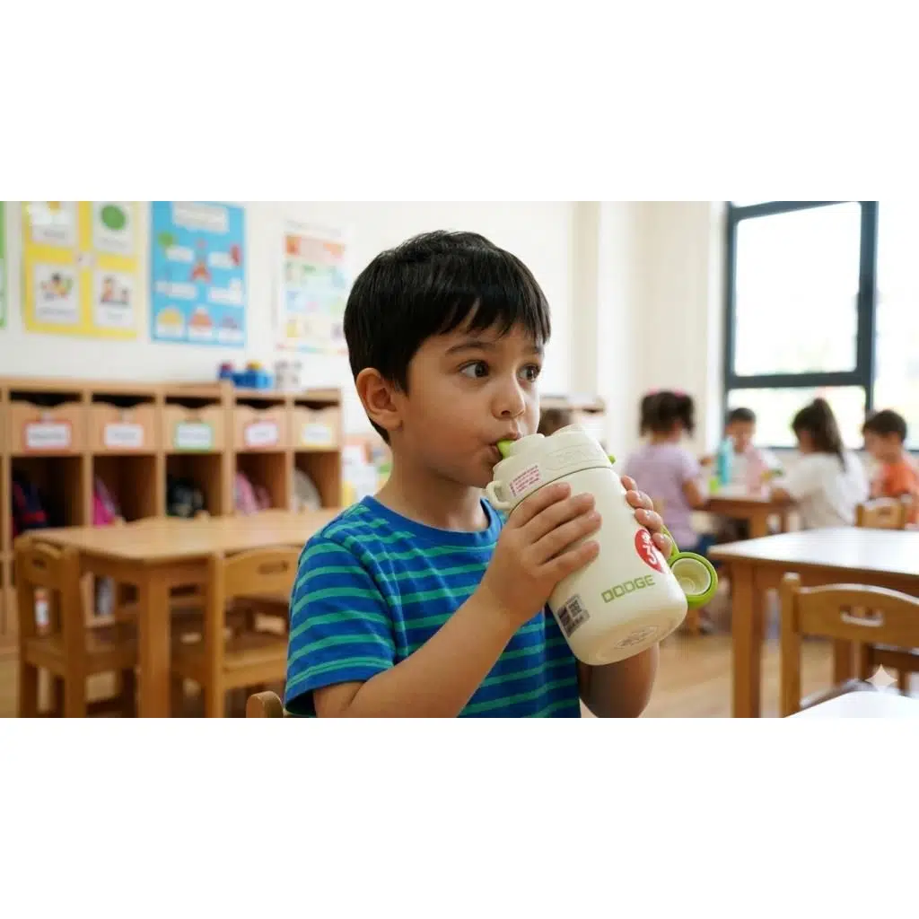 Dodge Çocuklar İçin Paslanmaz Çelik Matara Termos, Sızdırmaz ve Kilitli Kapaklı, Pipetli ve Emzikli Kullanım, BPA İçermeyen, Yalıtımlı, Termos Su Şişesi 450Ml Beyaz