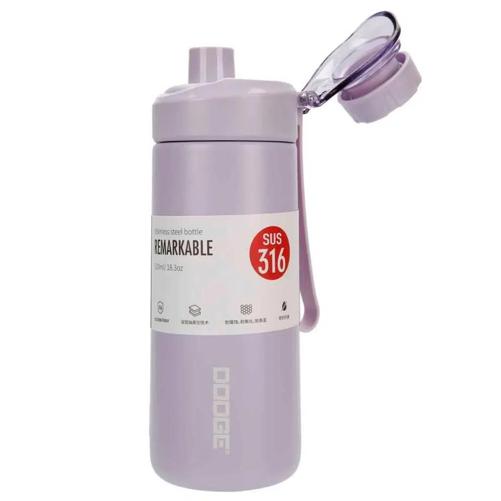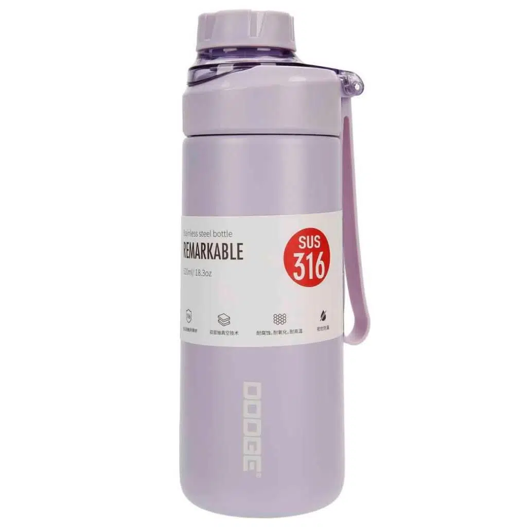 Dodge Fit Çelik Termos Matara, Vakumlu, Yalıtımlı, Paslanmaz Çelik 316, Kilitli Sızdırmaz Kapak 520Ml Mor