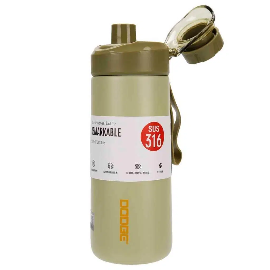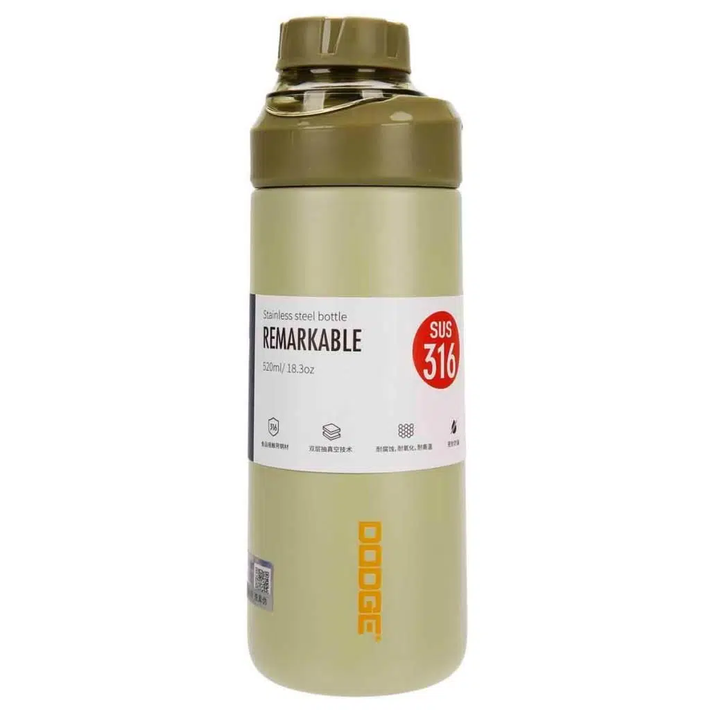 Dodge Fit Çelik Termos Matara, Vakumlu, Yalıtımlı, Paslanmaz Çelik 316, Kilitli Sızdırmaz Kapak 520Ml Yeşil