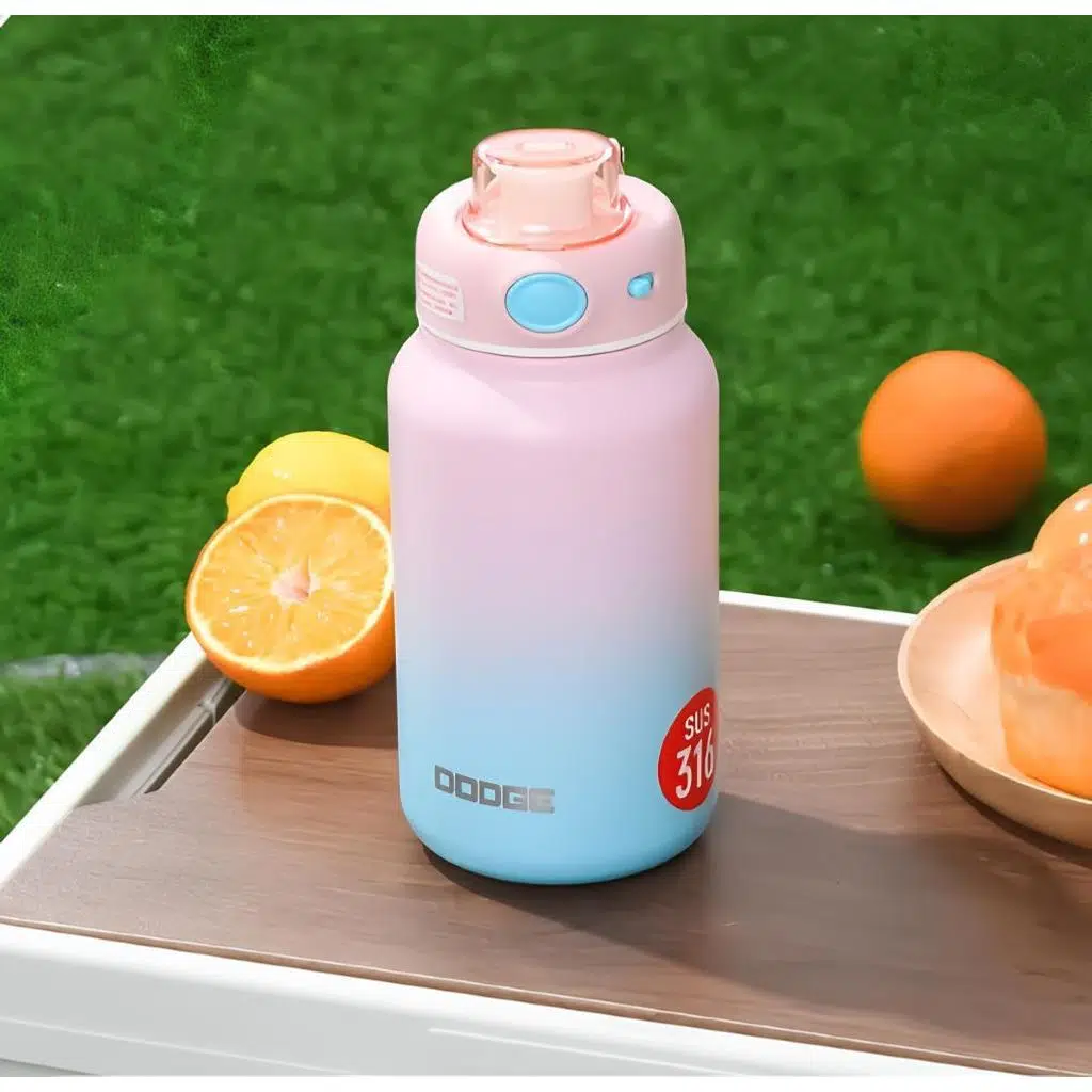Dodge Çocuklar İçin Paslanmaz Çelik Matara Termos, Sızdırmaz ve Kilitli Kapaklı, Pipetli, BPA İçermeyen, Yalıtımlı, Termos Su Şişesi 750Ml Açık Pembe Mavi
