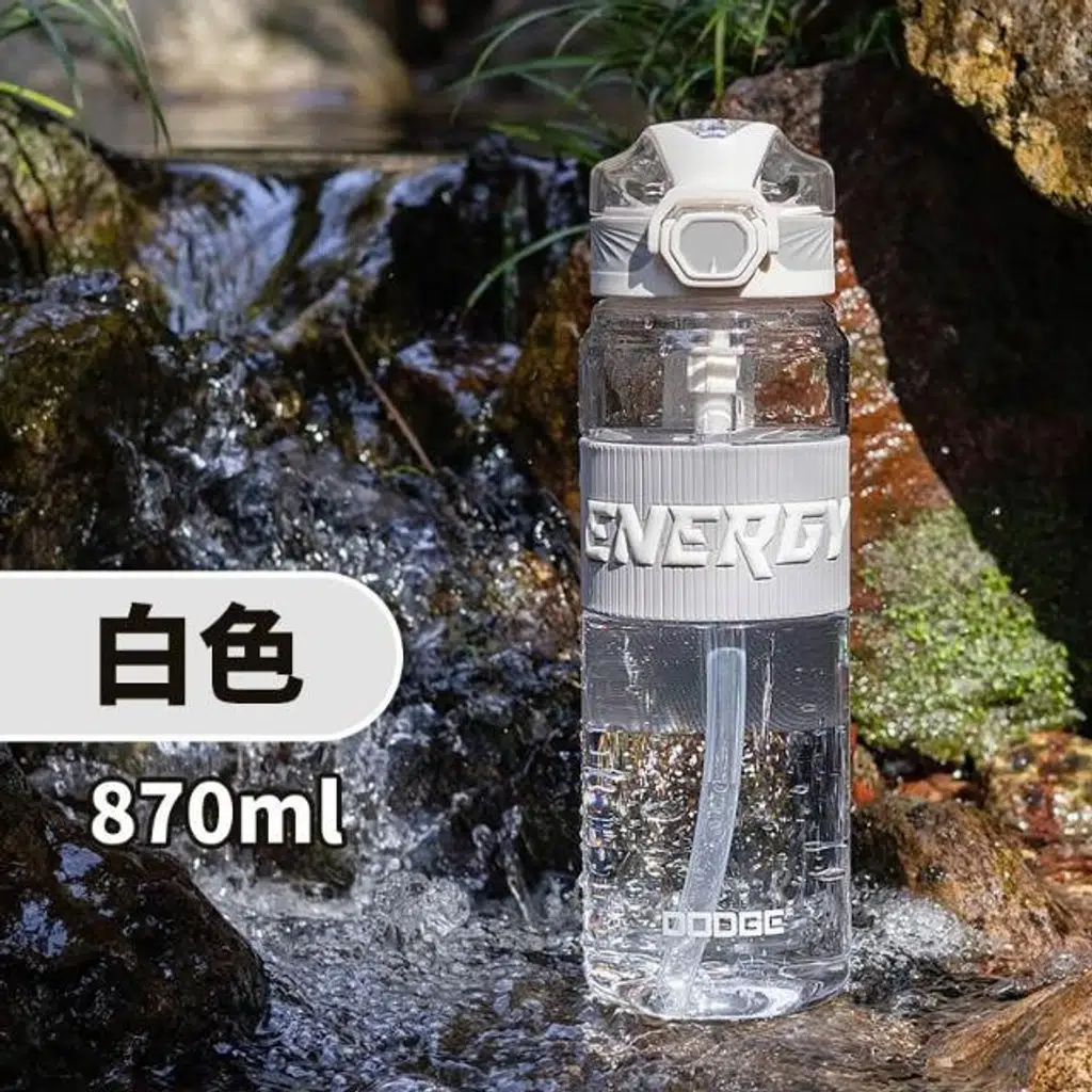 Dodge Su Matarası Tritan Silikon Kemerli, Şeffaf Kilitli Kapaklı, Sızdırmaz, Dayanıklı, Hafif, BPA İçermeyen Su Şişesi Gri 870Ml