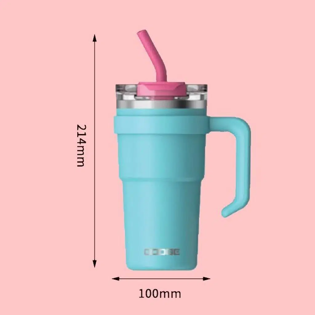 Dodge Trekking Çelik Termos Mug, Vakumlu, Yalıtımlı, Paslanmaz Çelik 316, Pipetli ve Emzikli Kullanıma Uygun, Kulplu 750Ml Turkuaz