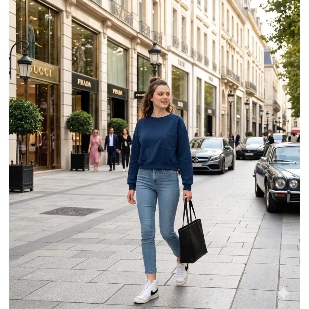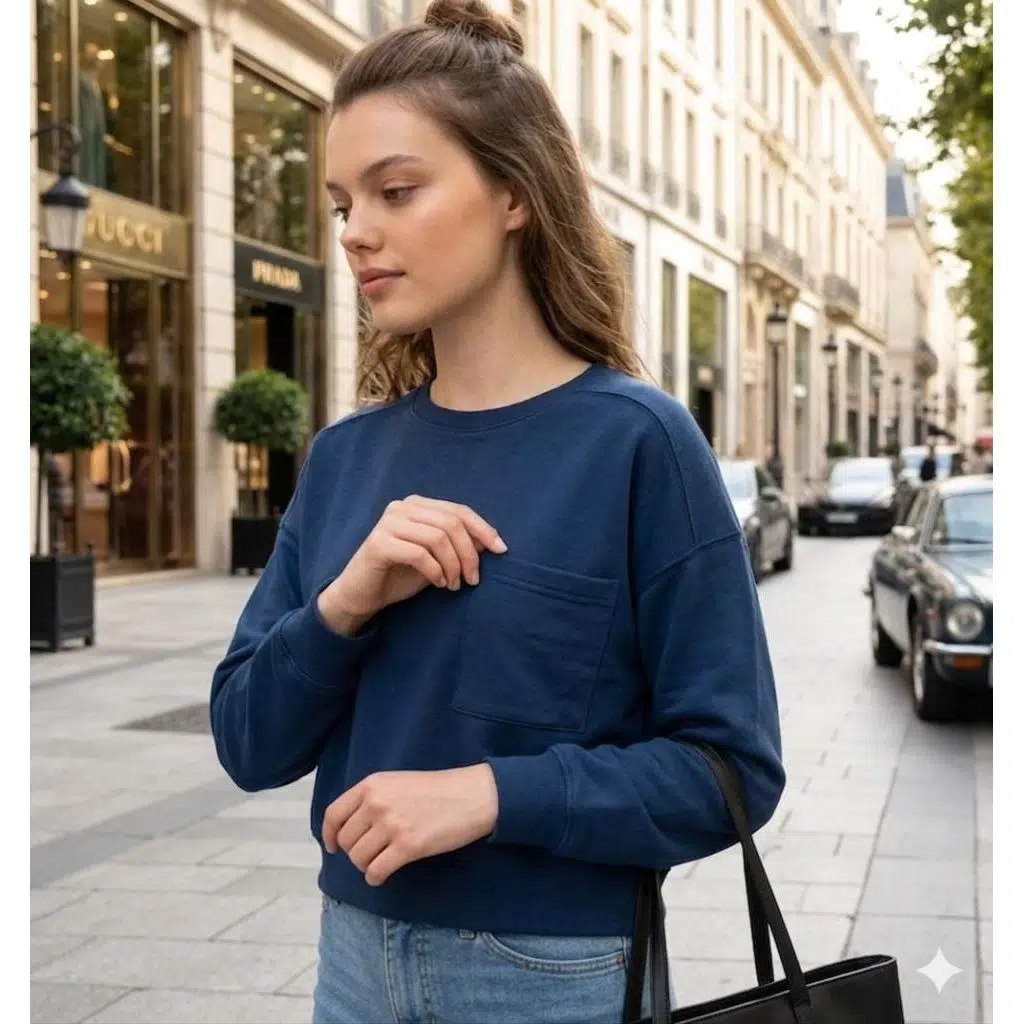 Bu şık crop sweatshirt günlük hayata uygun olarak tasarlanmıştır.