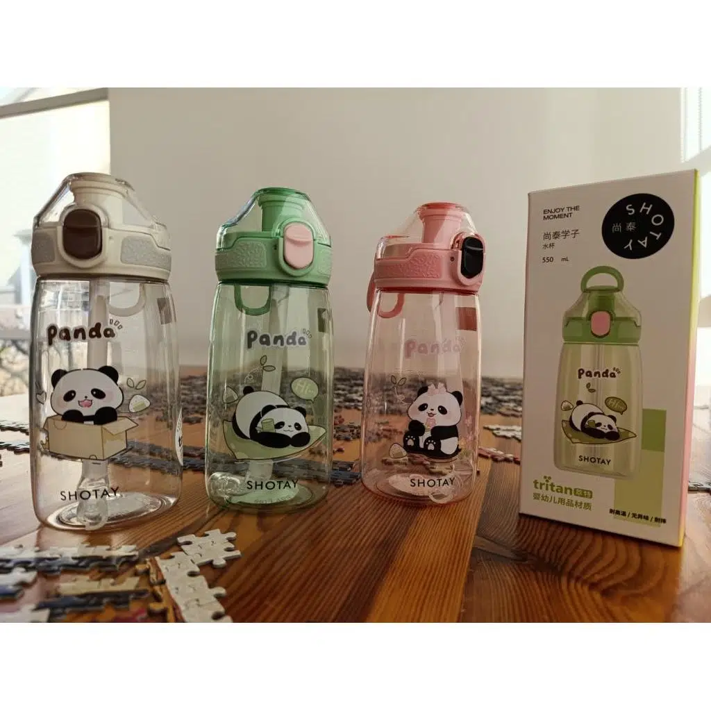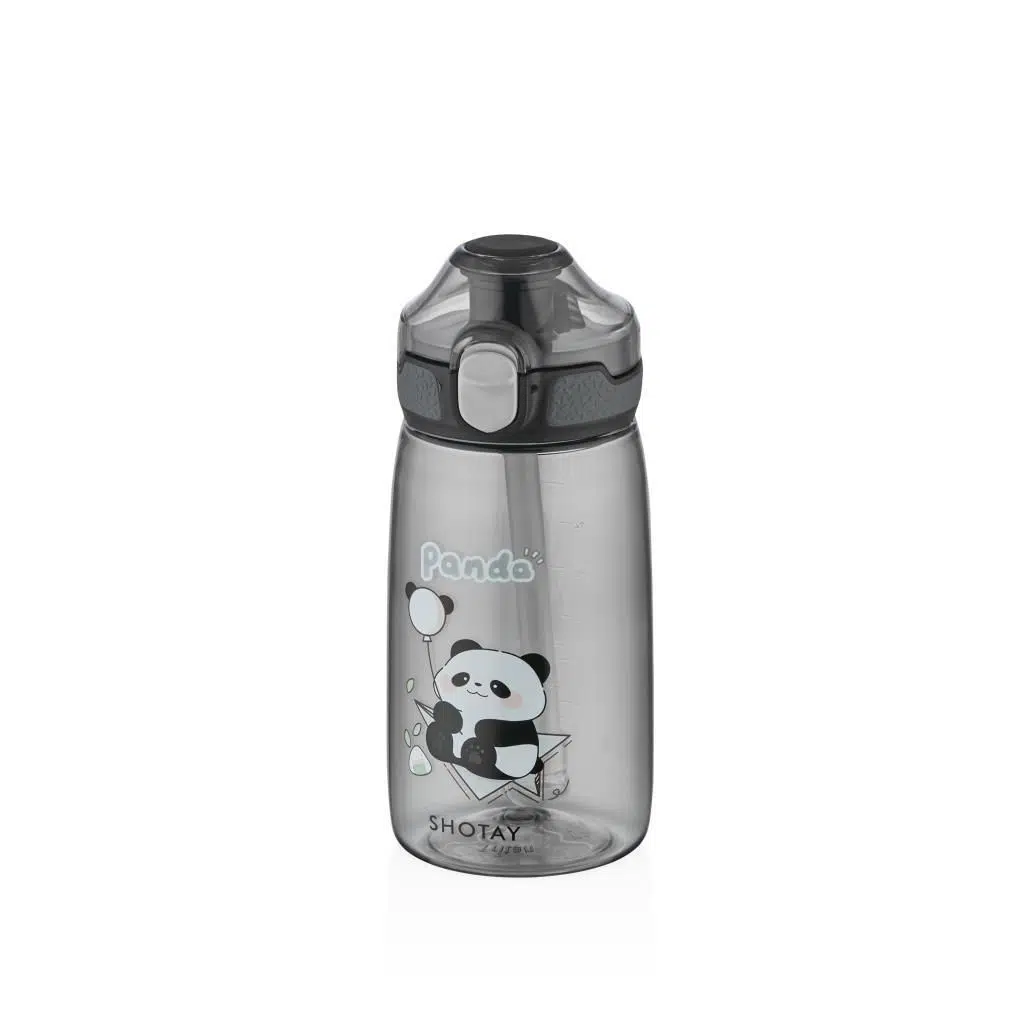 Shotay Child Çocuk Su Matarası Sızdırmaz, Kilitli Kapak, Dayanıklı, Kulplu, Pipetli ve Emzikli, BPA İçermeyen, Tritan Unisex Çocuk Panda Siyah 550Ml
