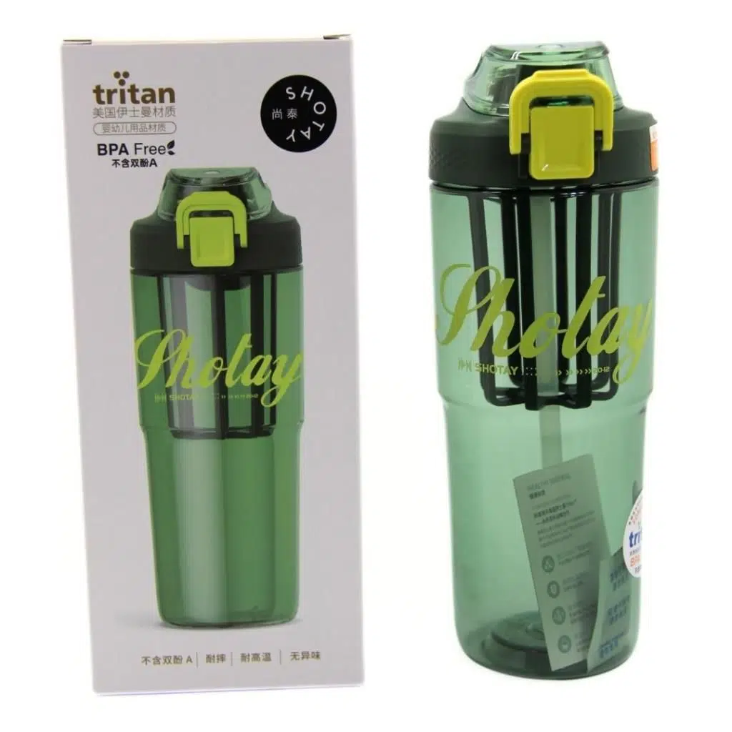 Shotay Class Tritan Bardak Matara Pipetli Outdoor, Sağlıklı, Dayanıklı, Kilitli Sızdırmaz Kapak 950Ml Yeşil