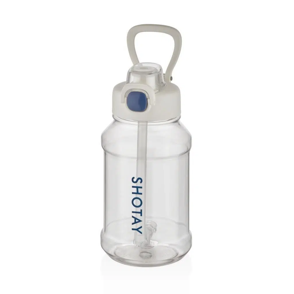 Shotay Su Matarası Şeffaf Kapaklı, Sızdırmaz, Dayanıklı, Hafif, BPA İçermeyen, Pipetli, Polikarbon Unisex Su Şişesi Beyaz 900Ml